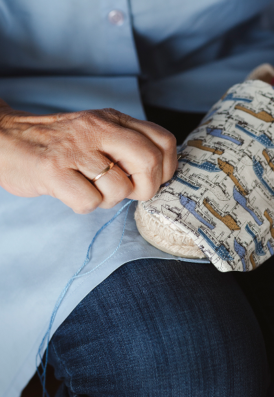 Pero lo que las hace únicas es el toque final: yo misma selecciono cuidadosamente telas especiales —auténticos tesoros textiles— para customizarlas y darles un diseño exclusivo. Así, cada par se convierte en una pieza irrepetible, que combina la esencia de lo artesanal con un estilo personal y contemporáneo.